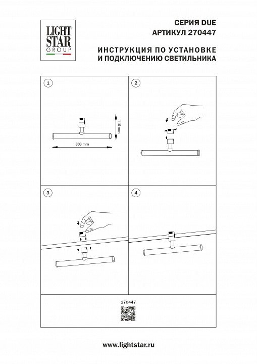 Главная Трековые светильники Светильник на штанге Lightstar Due Hermes 270447