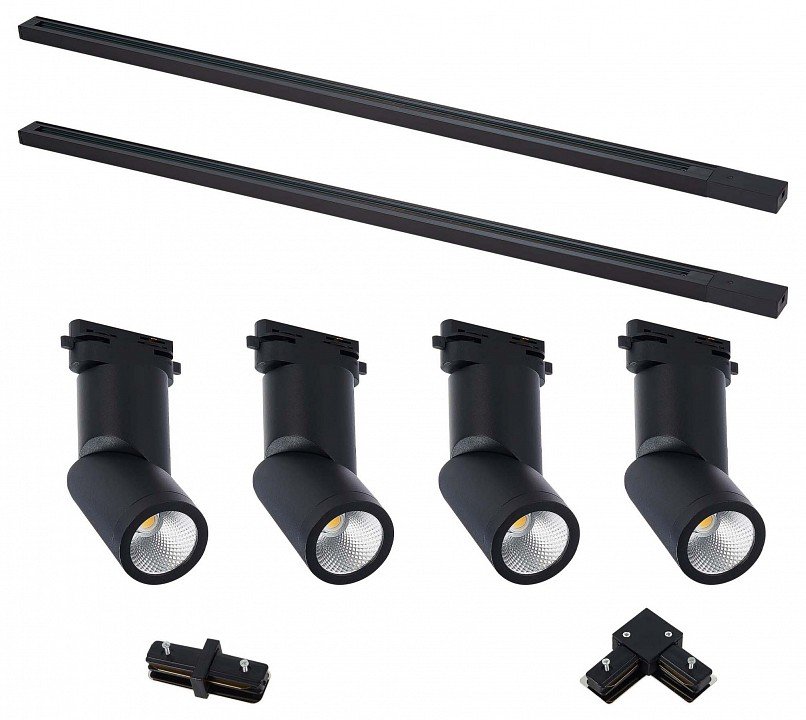 Компоненты, входящие в комплект: 2 шинопровода. 4 светильника. коннекторы