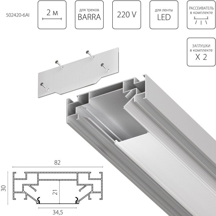 Главная Трековые светильники Профиль Barra Base 502420-6AI