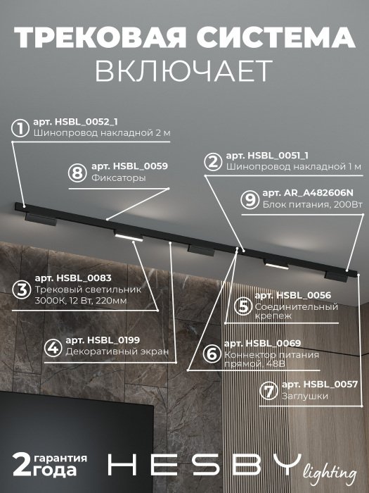 Главная Трековые светильники Трековая система в сборе ElDeko HSBL_kompl_E004_NI3B3K