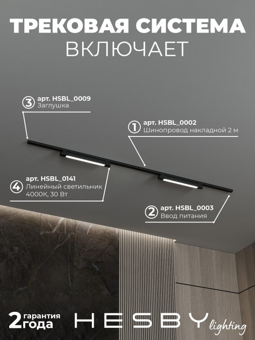 Главная Трековые светильники Трековая система в сборе №1 однофазная накладная Skylite HSBL_kompl_S001_NI2B4K