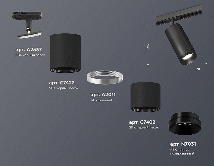 Компоненты, входящие в комплект: крепеж трековый d70. корпус накладной d70 - 2шт. коннектор d70. насадка передняя d70