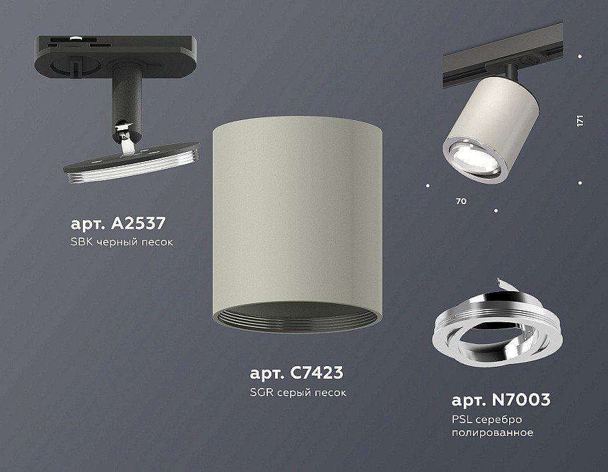 Компоненты, входящие в комплект: крепеж трековый d70. корпус накладной d70. насадка передняя d70
