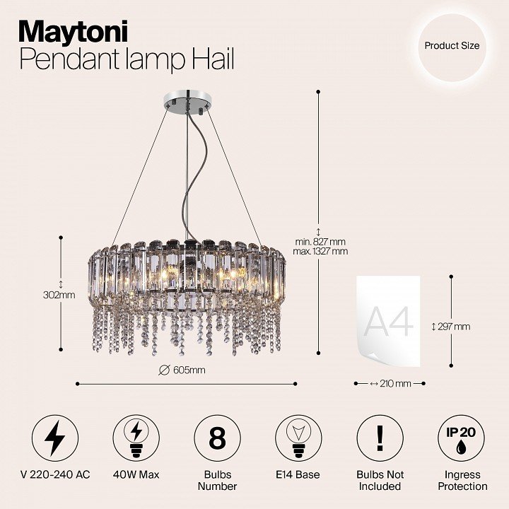 Станьте первым, кто оставит отзыв о товаре Подвесной светильник Maytoni Hail MOD097PL-08CH.