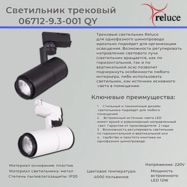 Главная Трековые светильники Трековый светильник Reluce 06720-9.3-001QY LED20W WT