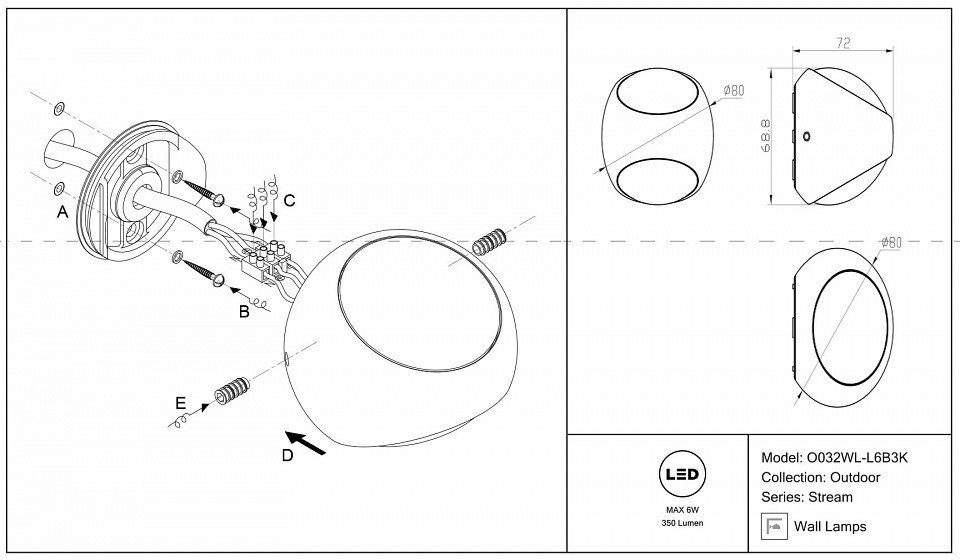Главная Уличные светильники Уличный настенный светодиодный светильник Maytoni Stream O032WL-L6B3K