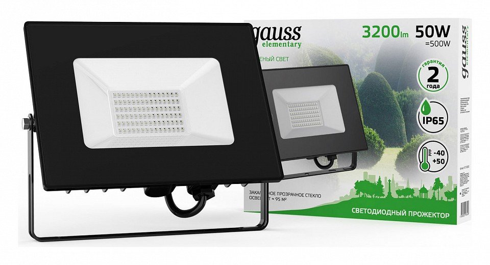 Главная Уличные светильники Прожектор светодиодный Gauss Elementary 50W 613100650