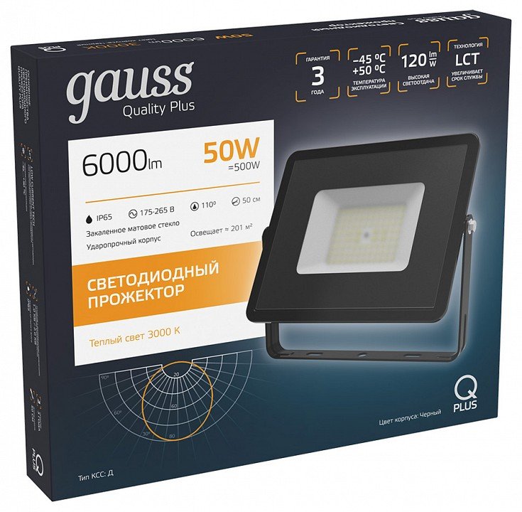 Прожектор светодиодный Gauss Qplus 50W 3000К 613511150