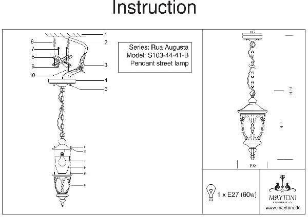 Станьте первым, кто оставит отзыв о товаре Уличный светильник подвесной Maytoni Rua Augusta S103-44-41-B.