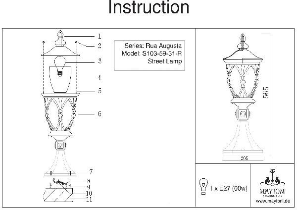 Главная Уличные светильники Уличный столб Maytoni Rua Augusta S103-59-31-R