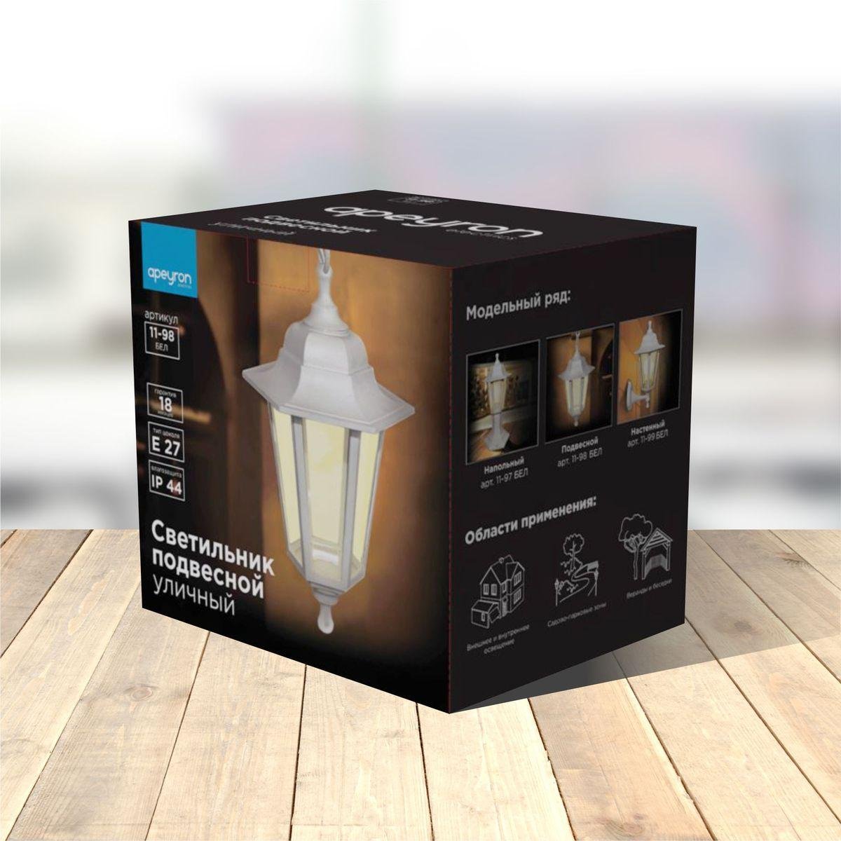 Главная Уличные светильники Уличный подвесной светильник Apeyron Адель 11-98бел
