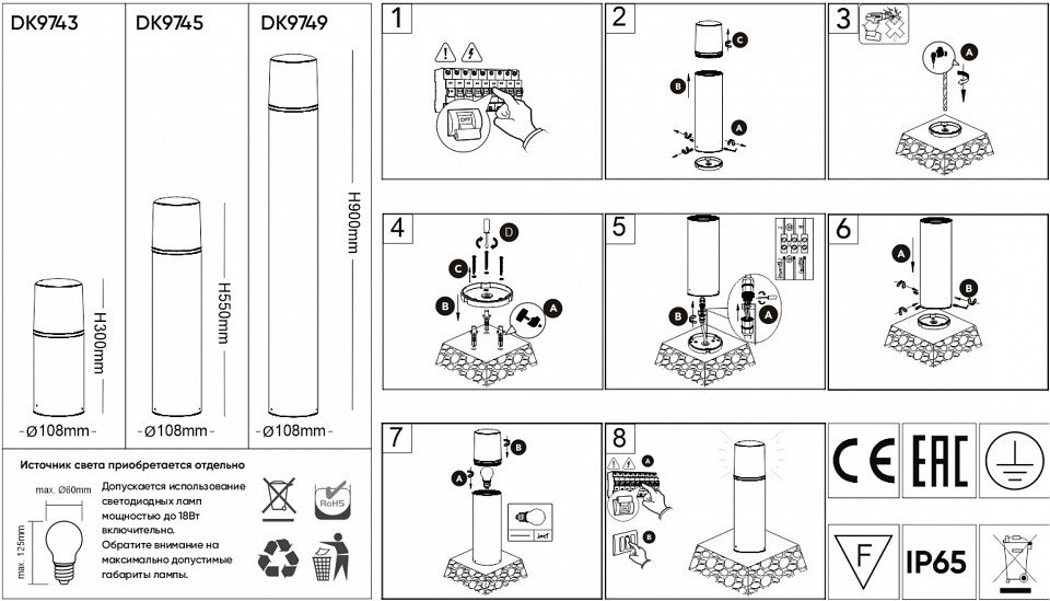 Главная Уличные светильники Наземный светильник Denkirs Nord DK9743-BK