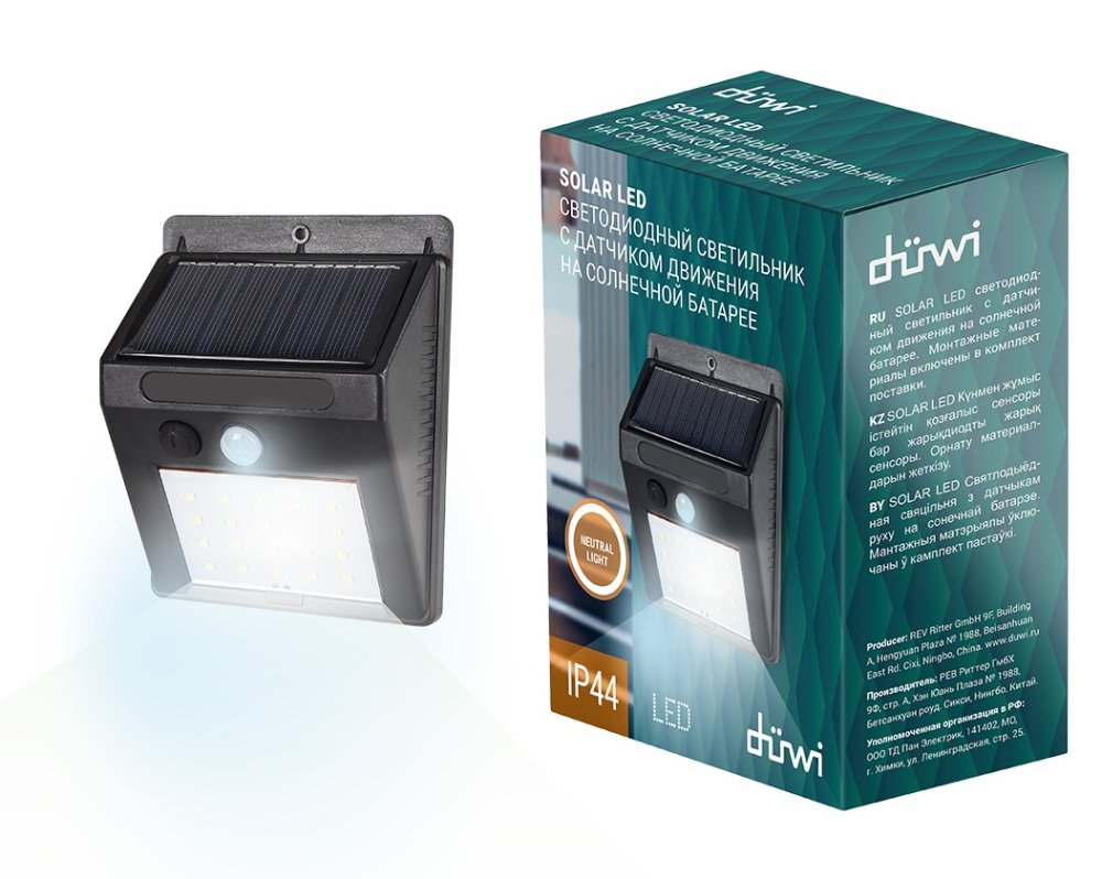 Архитектурный настенный светодиодный светильник Duwi Solar LED на солнеч. бат. с датчиком движ. 24297 0