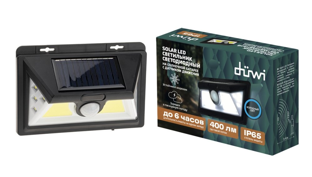 Главная Уличные светильники Архитектурный настенный светодиодный светильник Duwi Solar LED на солнеч. бат. с датчиком движ. 25016 6