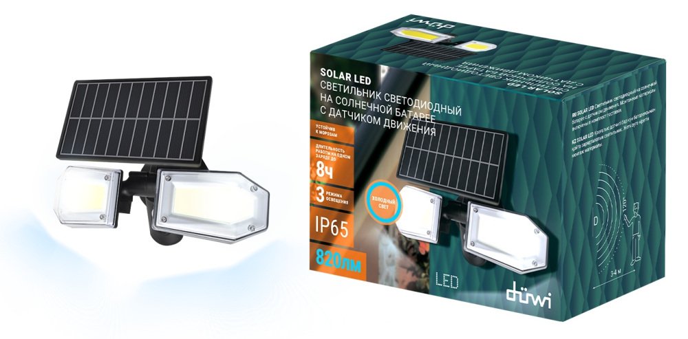Станьте первым, кто оставит отзыв о товаре Архитектурный настенный светодиодный светильник Duwi Solar LED на солнеч. бат. с датчиком движ. 25018 0.