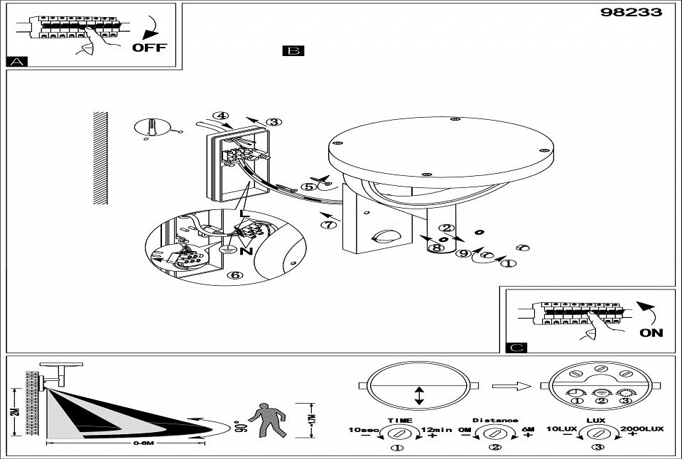 Площадь освещения, м2: ? 3