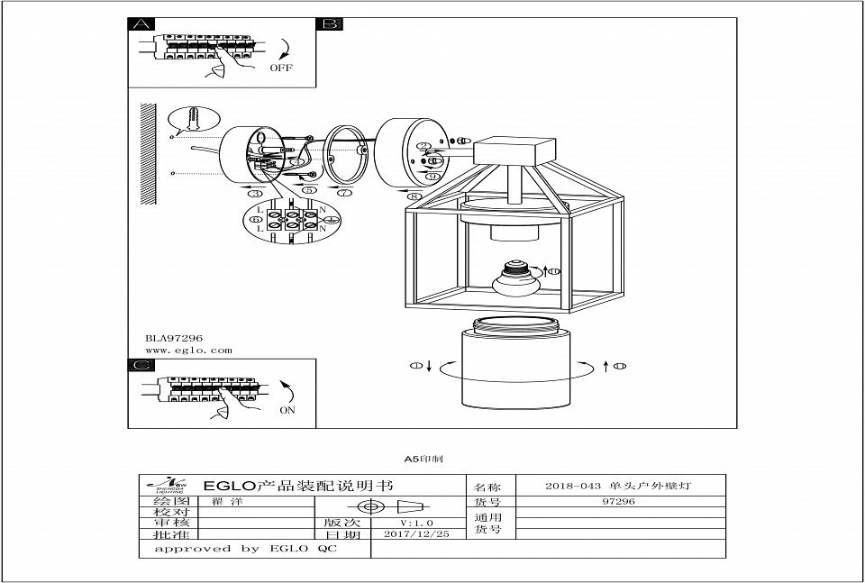 Главная Уличные светильники Уличный настенный светильник Eglo Trecate 97296