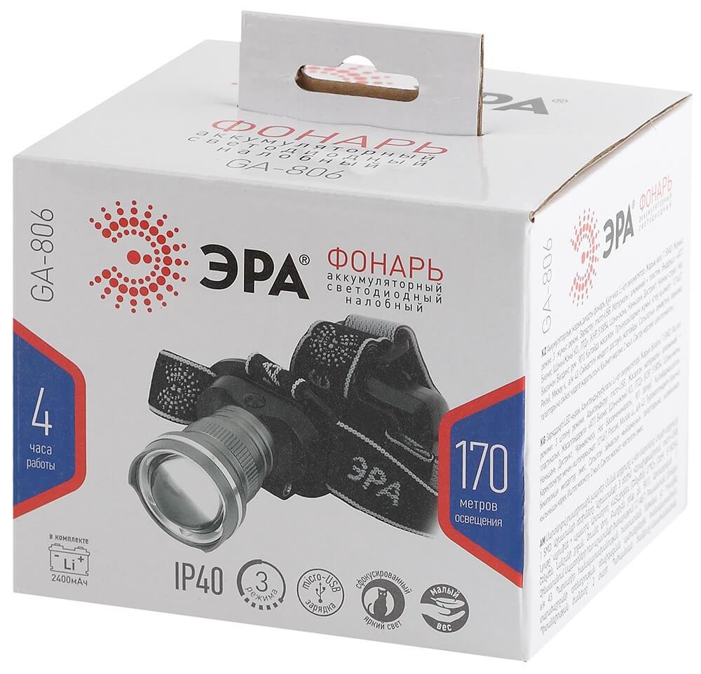Налобный светодиодный фонарь ЭРА аккумуляторный GA-806