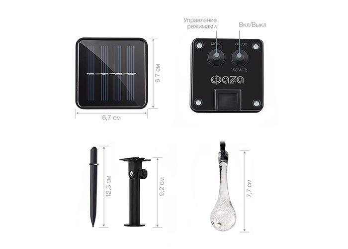 Главная Уличные светильники Светильник на солнечных батареях ФАZA Капельки SLR-G08-30B