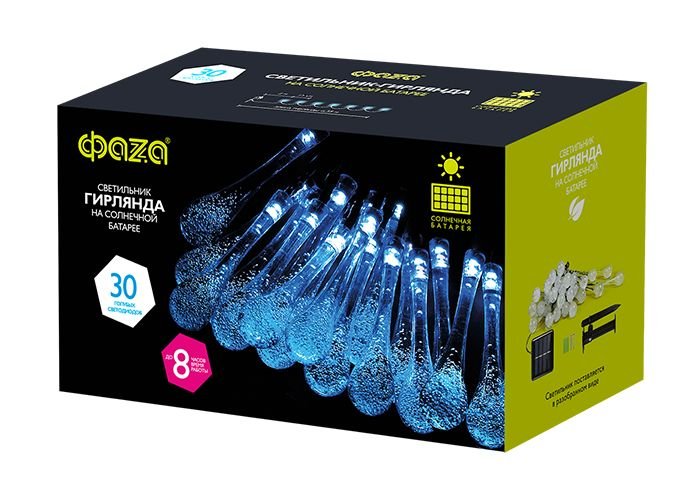 Светильник на солнечных батареях ФАZA Капельки SLR-G08-30B