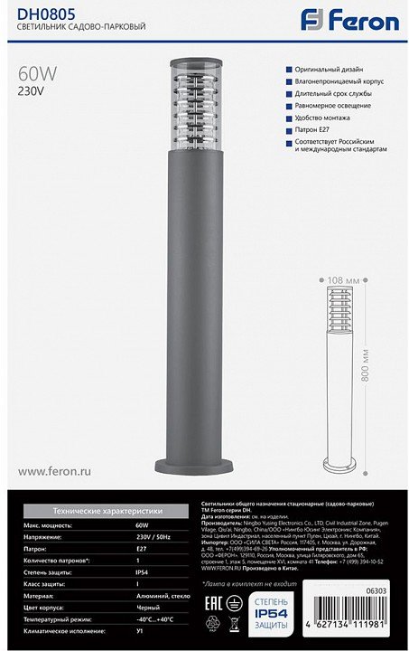 Главная Уличные светильники Наземный высокий светильник Feron DH0801 6303