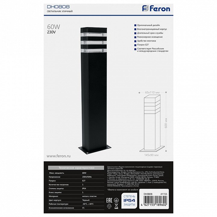 Станьте первым, кто оставит отзыв о товаре Уличный светильник Feron Техно DH0808 41155.