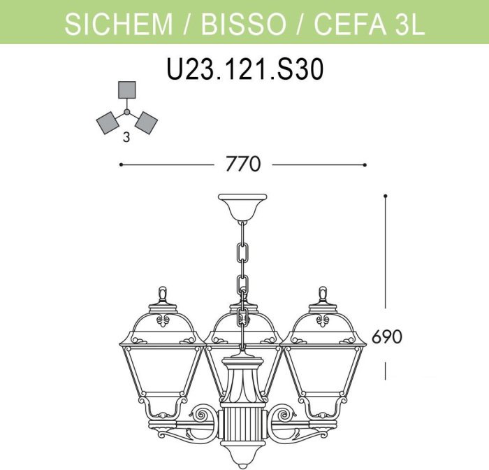 Главная Уличные светильники Уличный светильник подвесной Fumagalli Cefa U23.120.S30.VYF1R