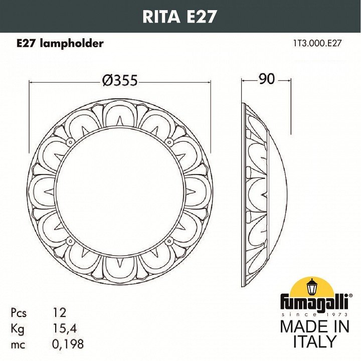 Станьте первым, кто оставит отзыв о товаре Уличный светильник Fumagalli Rita 1T3.000.000.AYE27.