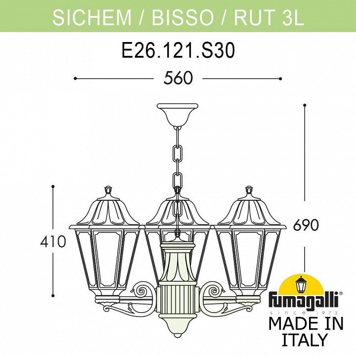 Главная Уличные светильники Уличный светильник подвесной Fumagalli RUT E26.120.S30.AYF1R