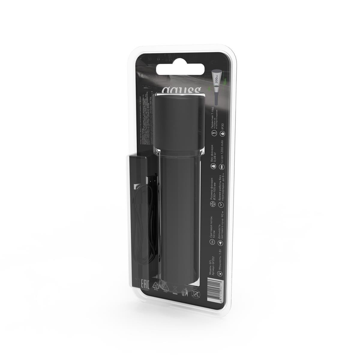Ручной светодиодный фонарь Gauss аккумуляторный 105х30 50 лм GF202