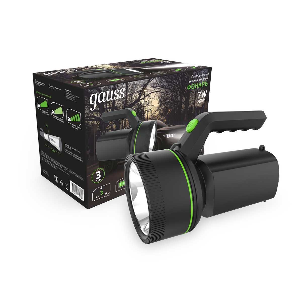 Станьте первым, кто оставит отзыв о товаре Прожекторный светодиодный фонарь Gauss аккумуляторный 215х145 200 лм GF601.
