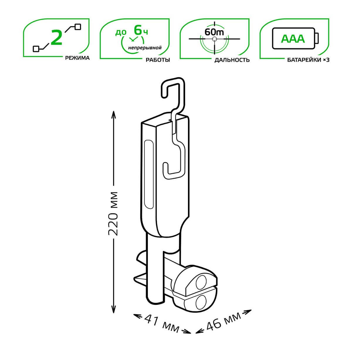 Рабочий светодиодный фонарь Gauss от батареек 220х46 400 лм GF503