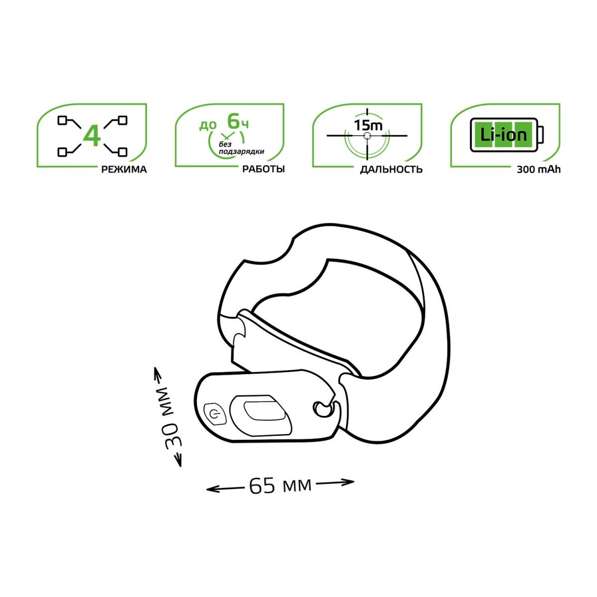 Главная Уличные светильники Налобный светодиодный фонарь Gauss аккумуляторный 30х60 150 лм GF408