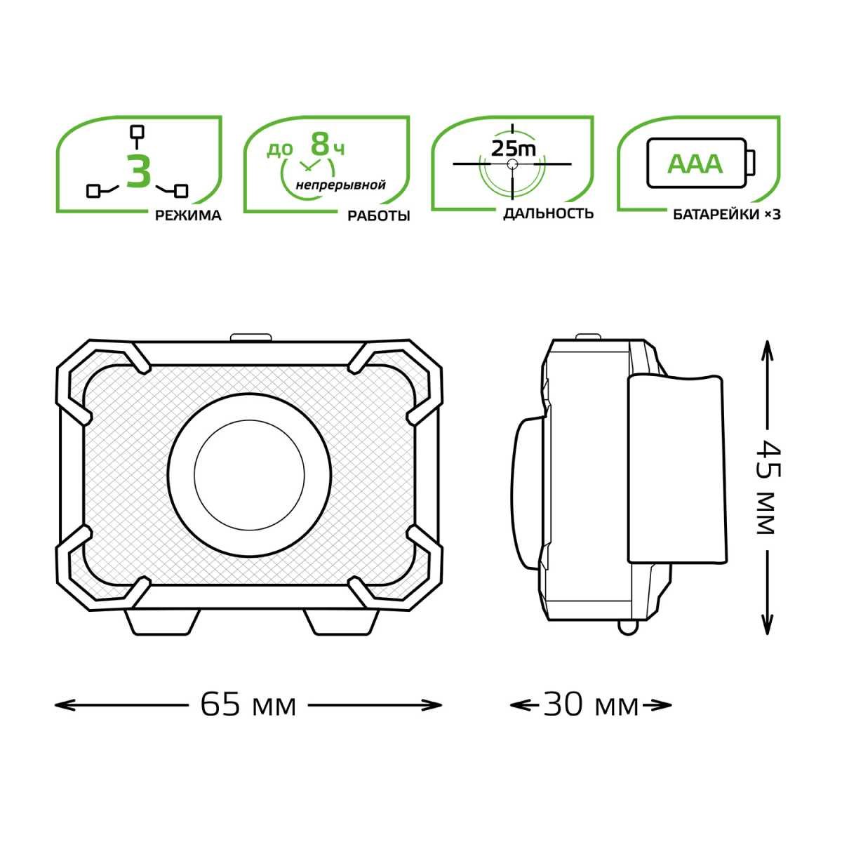 Главная Уличные светильники Налобный светодиодный фонарь Gauss от батареек 65х45 150 лм GF305