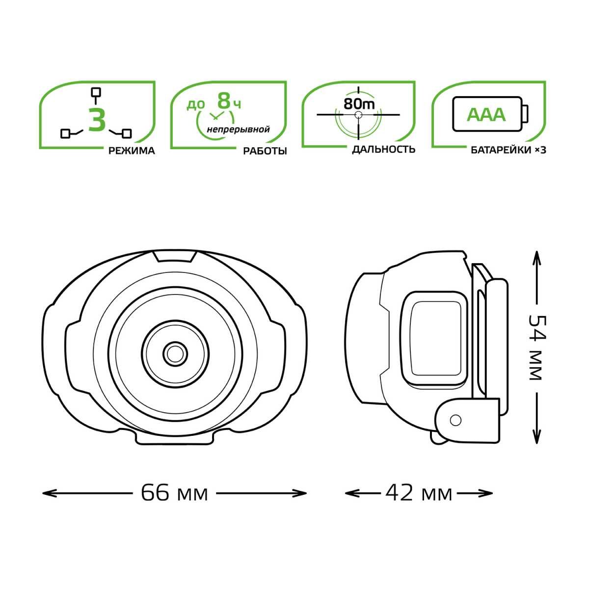 Главная Уличные светильники Налобный светодиодный фонарь Gauss от батареек 65х54 230 лм GF303