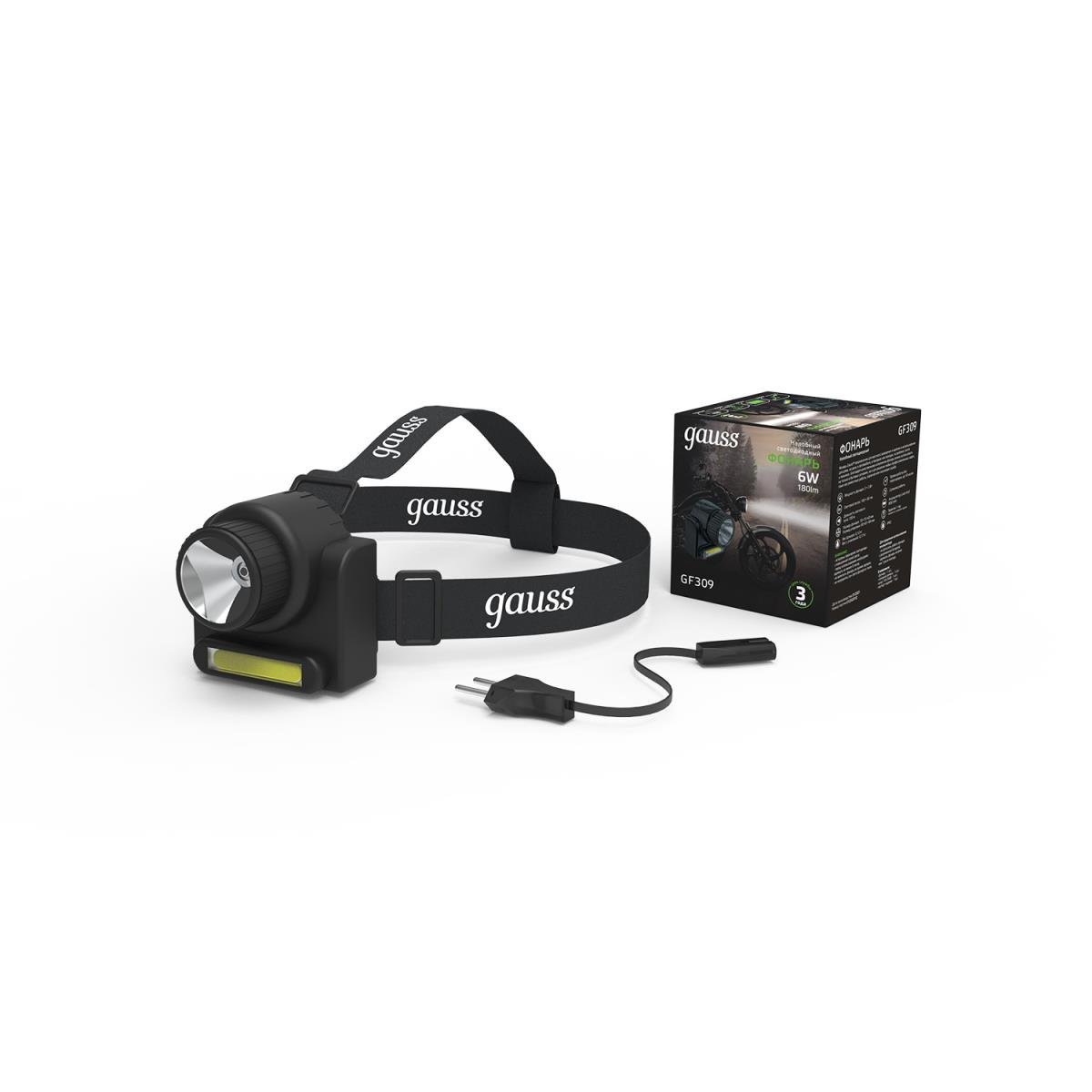 Станьте первым, кто оставит отзыв о товаре Налобный светодиодный фонарь Gauss аккумуляторный 75х70 180 лм GF309.