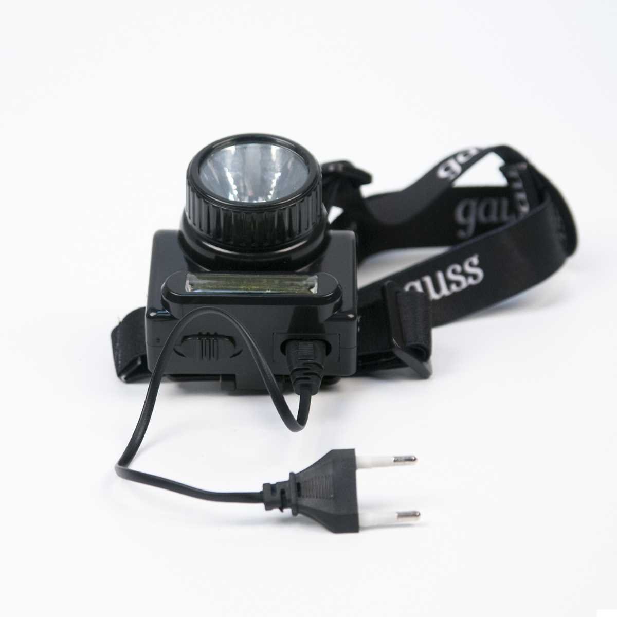 Налобный светодиодный фонарь Gauss аккумуляторный 75х70 180 лм GF309