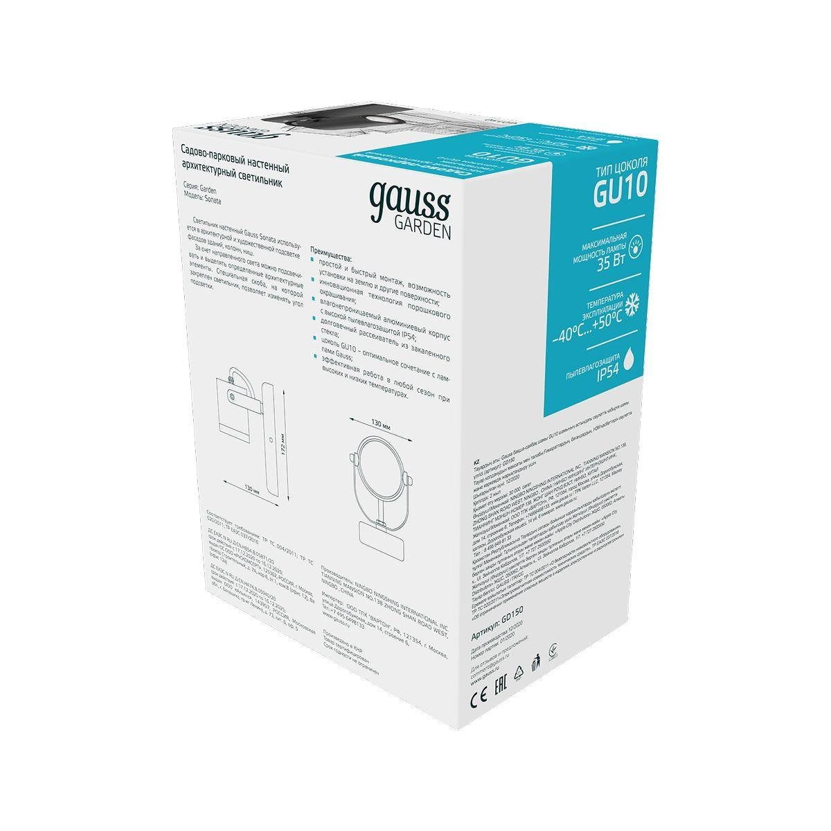 Станьте первым, кто оставит отзыв о товаре Уличный настенный светильник Gauss Sonata GD150.
