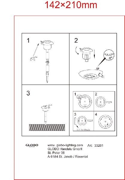 Станьте первым, кто оставит отзыв о товаре Светильник уличный грунтовый светодиодный на солнечных батареях Globo 33261.