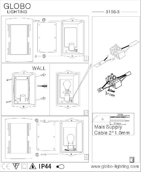 Главная Уличные светильники Уличный настенный светильник Globo Orlando 3156-3