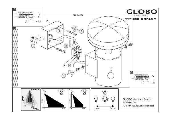 Станьте первым, кто оставит отзыв о товаре Уличный настенный светильник Globo Sergio 34145S.