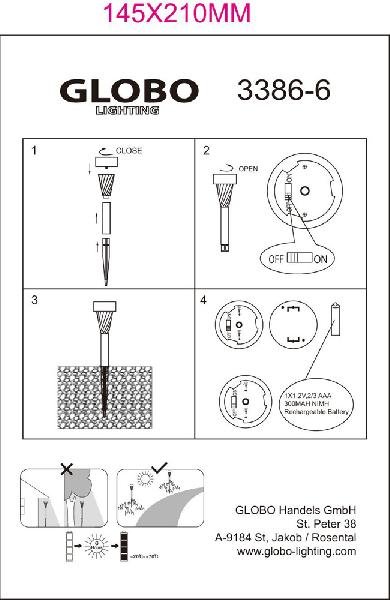 Станьте первым, кто оставит отзыв о товаре Уличный наземный Globo Solar 3386-6.