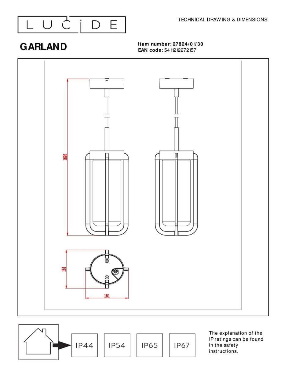 Уличный подвесной светильник Lucide Garland 27824/01/30