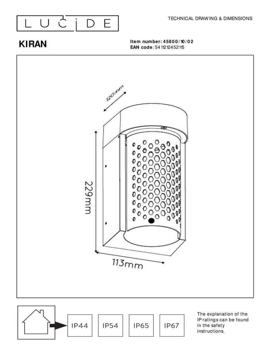 Главная Уличные светильники Уличный настенный светодиодный светильник Lucide Kiran 45800/10/02