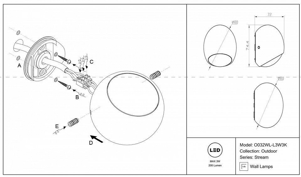 Главная Уличные светильники Уличный настенный светодиодный светильник Maytoni Stream O032WL-L3W3K