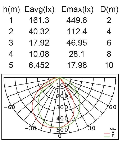 Площадь освещения, м2: ? 4