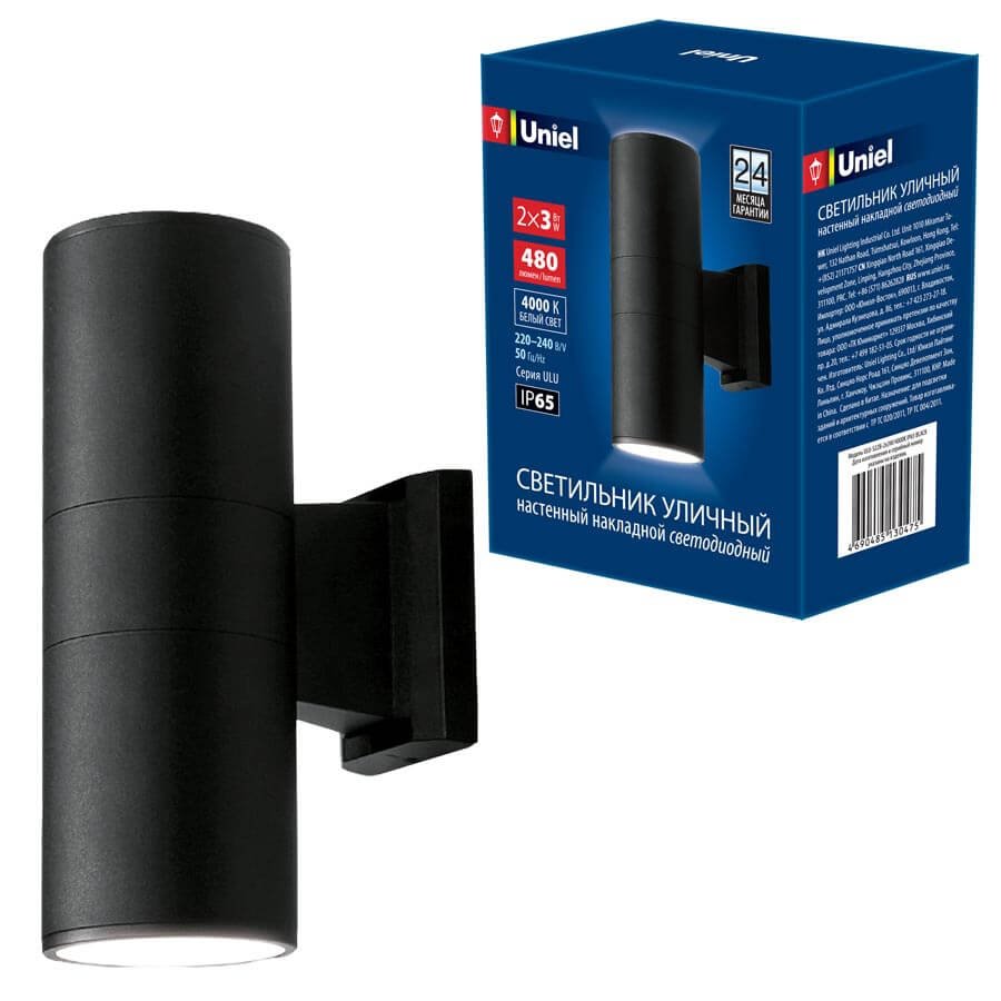 Станьте первым, кто оставит отзыв о товаре Уличный настенный светодиодный светильник (UL-00006802) Uniel ULU-S22B-2X3W/4000K IP65 Black.