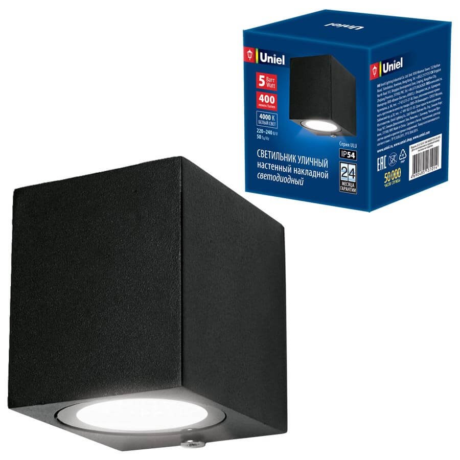 Станьте первым, кто оставит отзыв о товаре Уличный настенный светодиодный светильник (UL-00006806) Uniel ULU-S05A-5W/4000K IP54 Black.