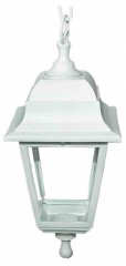 - подвесной – ещё одно популярное решение в создании атмосферного освещения на приусадебном участке. При подборе такого светильника стоит учесть дизайн экстерьера, стиль дома и ландшафта, например, классика или ретро. Изделия могут быть выполнены из металла, дерева и других материалов.